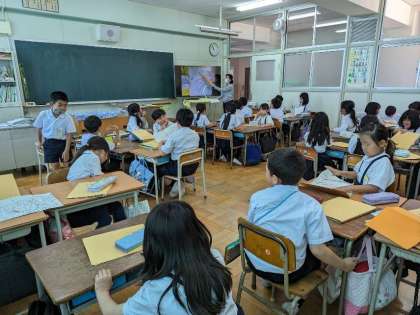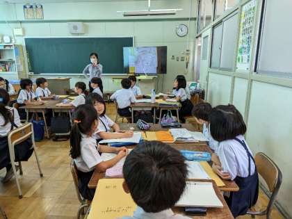 私たちのまちに、危険なところはないかな?みんなの命はみんなで守る!これからしっかり学習していきましょう。返事は大きく聞こえる声で!いつもの学習がいざというときに役に立ちます!
