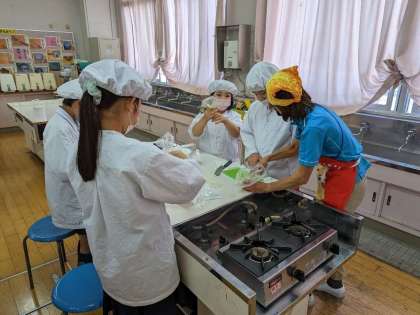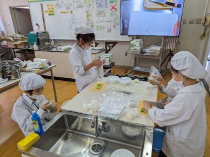 混ざり合った和え物は塩加減よく、ご飯のお供にピッタリ!見てる方がお腹空きます。包丁の使い方も上手です。これからも調理実習がんばろう!