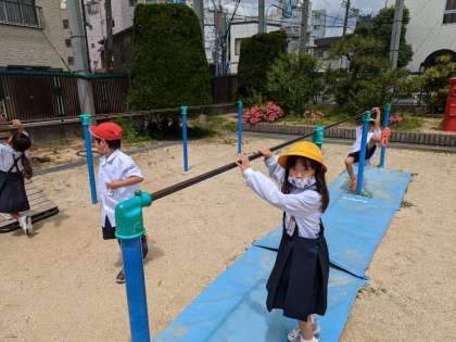 1年生は体育で鉄棒の学習しているので、休み時間もしっかりと練習しましょうね。