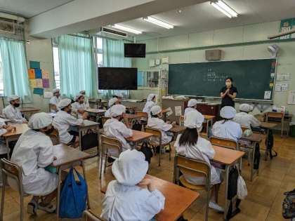 朝の時間ですが、すでに調理実習のために着替えていました。