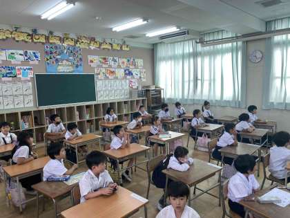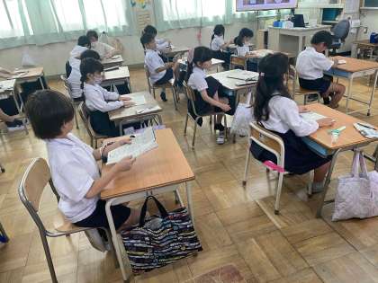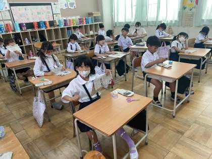 新聞紙でスリッパを作りました。これなら低学年でも十分に作成できます!