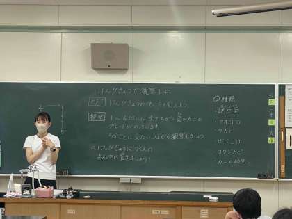 顕微鏡の使い方を学習しています。正しく使って新たな発見に結びつけてほしいと思います。