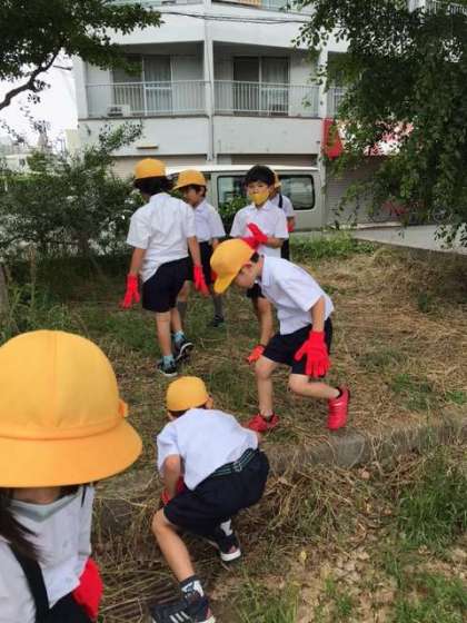 図書館からの帰りに、柏里西公園で清掃活動をしました。