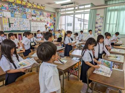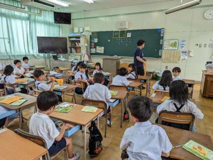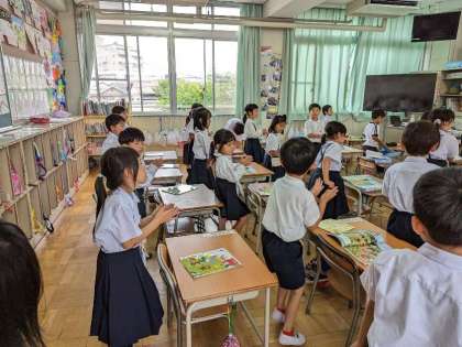 あるこうあるこう わたしはげんき「さんぽ」の歌を、先生の伴奏に合わせて、手拍子、足踏みを組み合わせてリズムよく歌っていました。