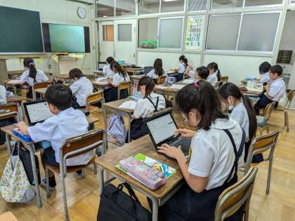 算数の問題集のまとめを終え、パソコンでの補助教材に取り組んでいます。