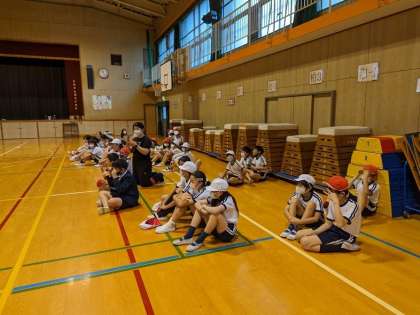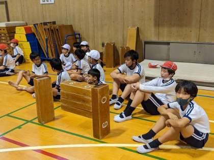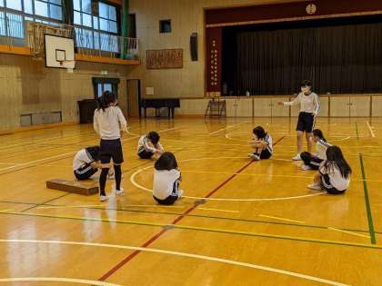 表現運動で各グループ自分たちが考えた動きを発表しています。