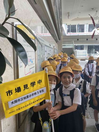 満員電車でしたが、無事に中央卸売市場に到着いたしました。見学開始です。