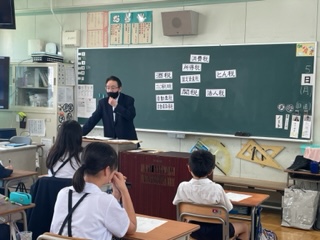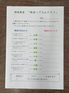 西淀川税務署の方々が来られて、税に関する出前授業がありました。一億円と同じ重さのケースを持たせてもらいました。