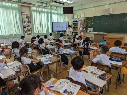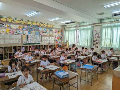 いろいろなかたちについて考えています。はこのような形、つつのような形、しっかり先生の話を聞くことができています。