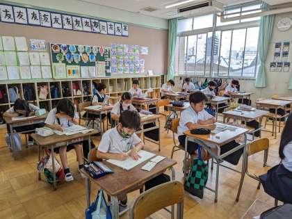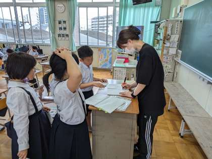 プリントのチェックをしています。書くときの姿勢はどうですか?