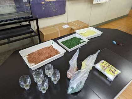 植物の根から吸い込んだ水はどこを通っていくのかの実験で、色水を使って水の通り道を確認しています。