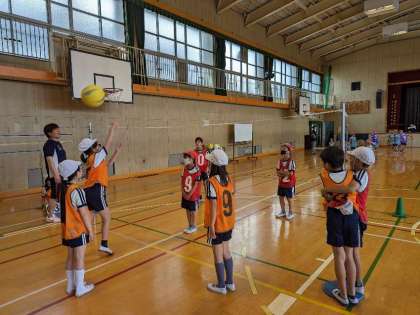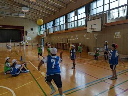 ソフトバレーボールにつながるキャッチバレーボールをしています。