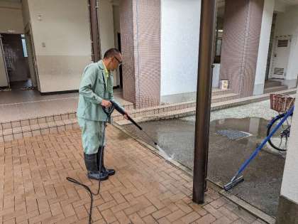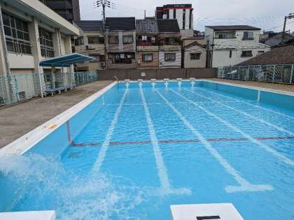 プール清掃とプール研修会がありました。管理作業員さんが、プールだけではなく、中庭の周りの通路など、なかなか汚れが取れないところも高圧洗浄機できれいに清掃しました。来週からのプールでの学習、体調管理にくれぐれも気をつけて、元気に学習できるよう頑張りましょう。