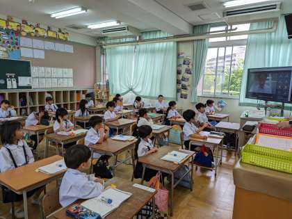 リモート朝会、校長先生の話をしっかりと聞くことができています。プールについて説明がありました。小学校の大きなプールは初めてで、緊張する人もいるかもしれませんが、安全に水に親しむ学習ができればいいと思います。プールセットを忘れないように持ってきましょう。