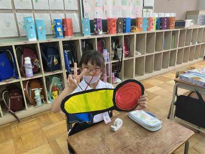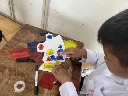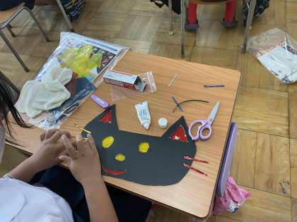 ハサミを使って丁寧に切り取って糊で貼り合わせて作品を作り上げていってます。とても素敵な作品ばかりです。