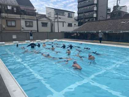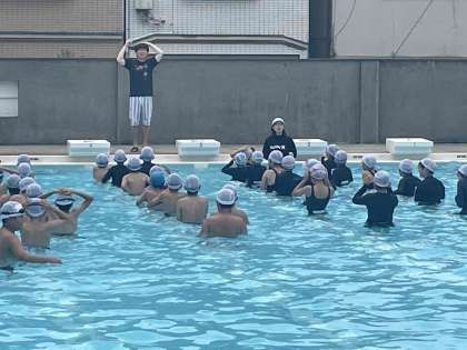 4年生も晴天の下プールに入ることができました。久しぶりの水の感触を楽しみました。