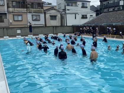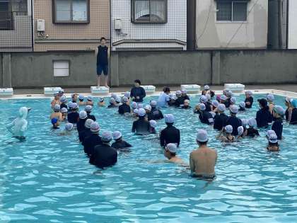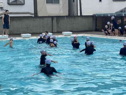 簡単に水慣れした後にプール内を6年生と散歩しました。