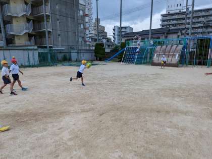こちらはドッジボールです。ふわふわボールでやることで当たっても痛くない。ボールが苦手な人もふわふわボールで楽しめると思います。