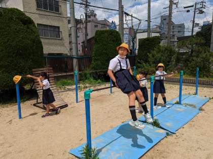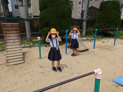黄色帽子を被って遊びましょう。熱中症対策バッチリですか?