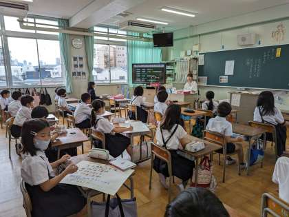 図書委員会の児童が読み、聞かせに教室移動しています。とくし読書タイム、静かに読書できました。