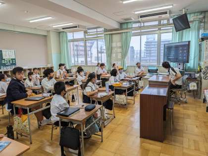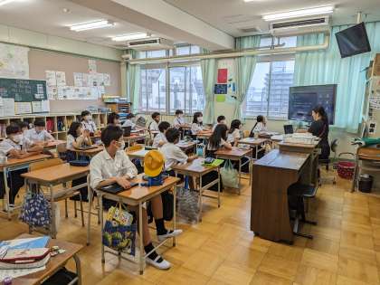リモートでの児童集会も落ち着いてクイズに解答しています。さすが6年生!