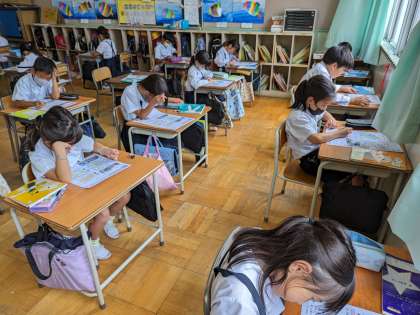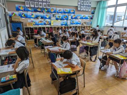 学習テストをしています。しっかりと振り返り、町の様子をしっかりと確認しましょう!
