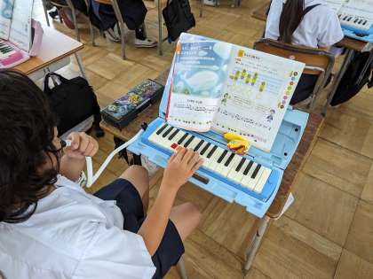 ドレミで歌ってから、鍵盤ハーモニカで演奏しました。