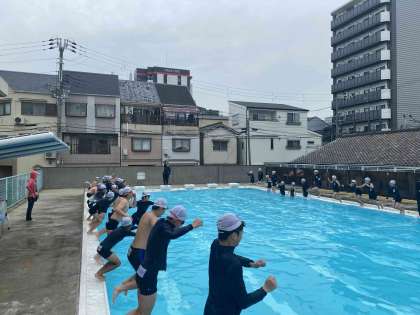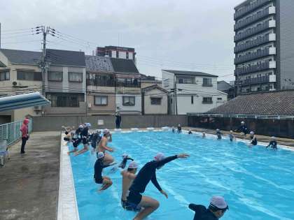 リズムに合わせて足から入水です。飛び込んだ時のような感覚があり楽しそうでした。