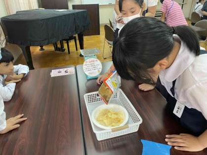 みんなが大好きであろうポテトチップスを使って一人分の適切量を予想し、その量でジャガイモがいくつ使われているのかなど、お菓子について広く深く学習することができました。