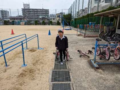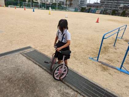 お昼休みの後、片付けられていなかった。一輪車を片付けている5年生がいます。どうすればよいか考えられる高学年。素晴らしいです!