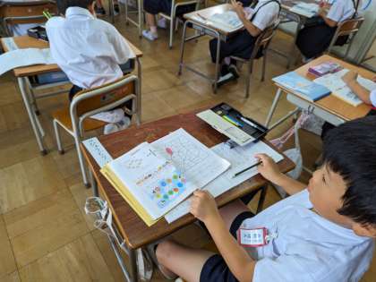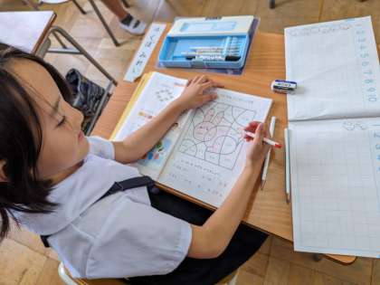 たし算のまとめの学習をしています。色塗りも丁寧にがんばっています!