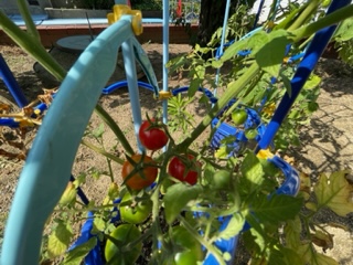 春から育てているミニトマトが実りました。とてもおいしそうです。