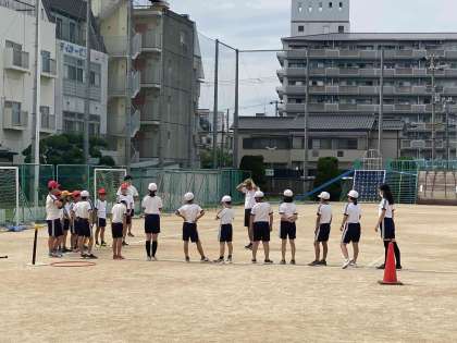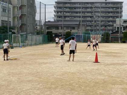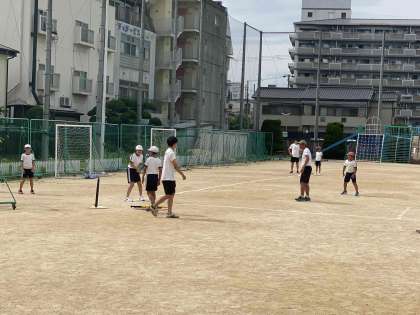 球技クラブでは、ラケット野球を行いました。誰でも打ちやすく楽しめます。