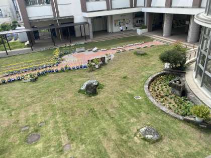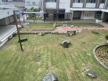 昨日ですが、管理作業員の山田さんが中庭の芝を刈ってくれました。すっきりと気持ちの良い夏らしい芝に生まれ変わりました。そして、利用していない深くて大きな池がありましたが、土で埋めて花壇に変身です。これで子どもたちが安全なだけでなく、綺麗な夏の花を観察することができます。