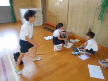 風の力で車が動くかどうか実験をしています。風の力が強くなれば、進む距離はどうなるでしょうか?実験の結果をしっかり振り返りましょう。