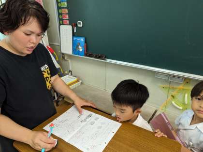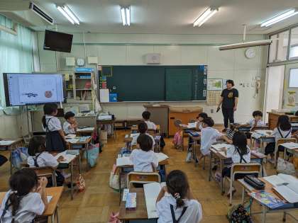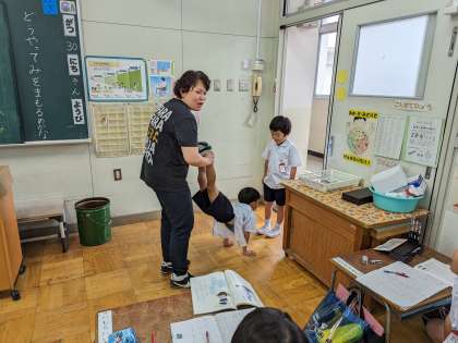 「どうやってみをまもるのかな」の学習で、動作化を入れて、スカンクになったつもりで、敵をおどかしています。