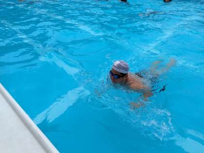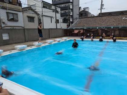 平泳ぎのコンビネーションの練習をしていました。腕の牡蠣と足の蹴りのタイミングがなかなか難しいですが、一生懸命練習を重ねて泳ぎ方の習得に励んでいます。