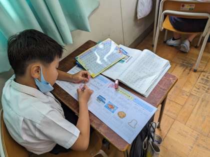 ローマ字の学習を進めています。なぞるところからがとても大切な基本です。
