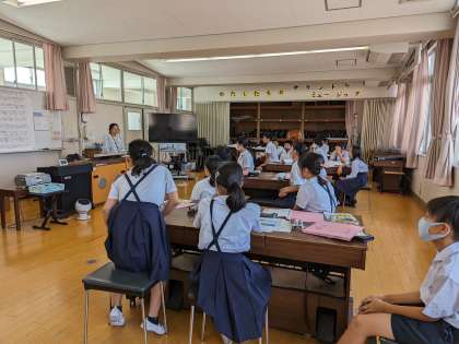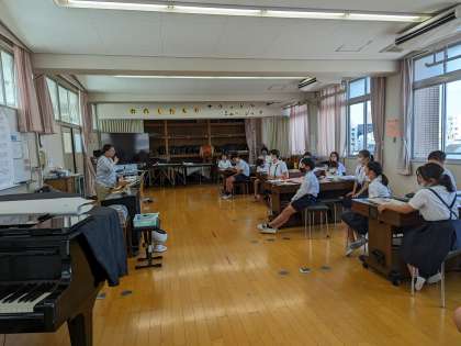 音楽の歌唱テストの結果をみんなで称え合っています。