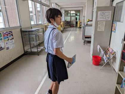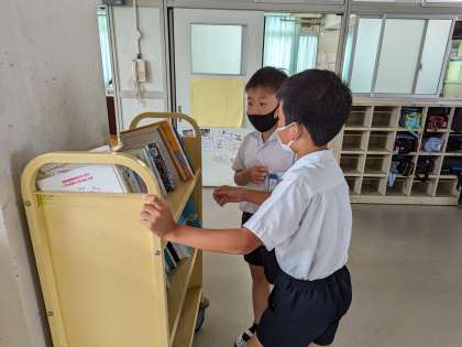 本を手にとって教室に戻ります。チャイムがなる前に準備できるともっといいですね!
