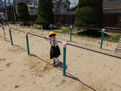 鉄棒がとても暑くなっています。練習するみんなの上達したい気持ちも熱くなっています。