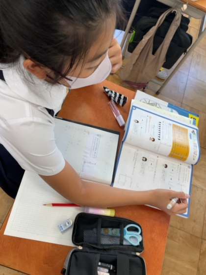 HELLOの文字は何人で作ることができるかという問題に取り組みました。自分で見通しを立て、問題に取り組むことができていました。