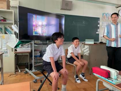 みんな一生懸命何を言えば伝わるか考え、英語をしぼりだし、楽しんでいました。