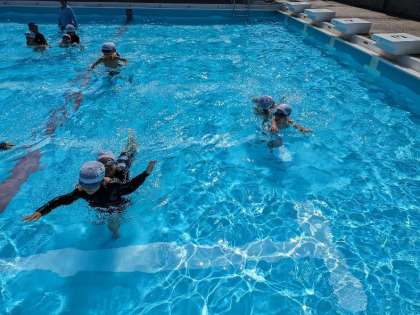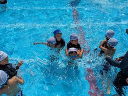 おんぶして移動、前の人に捕まって身を任せて移動しています。