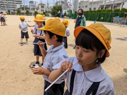 風にも乗ってどんどん高く飛んでいきます。吹く力加減がとても重要です。