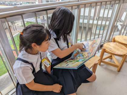 図書室だけではなく、ふれあい広場にある本を読書している人もいました。