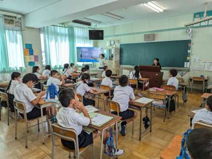 林間学習の歌を練習しています!さあ、明日から林間学習です。みんなで協力しましょう!