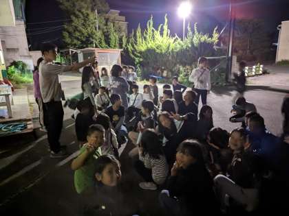 キャンプファイヤーの後に活動班で集合して部屋に戻ります。これから班長会があります。