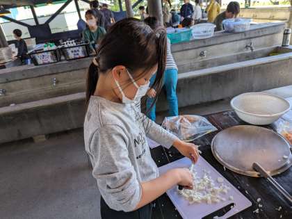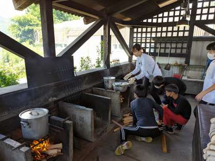 さあいよいよラストスパートです。カレーのルーを鍋に入れ、固まりがなくなるようにかき混ぜています。