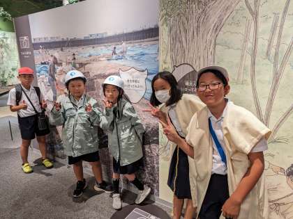 縄文人と考古学者になりきっての撮影です。衣装が4着しかないので、グループで協力しての撮影となりました。
